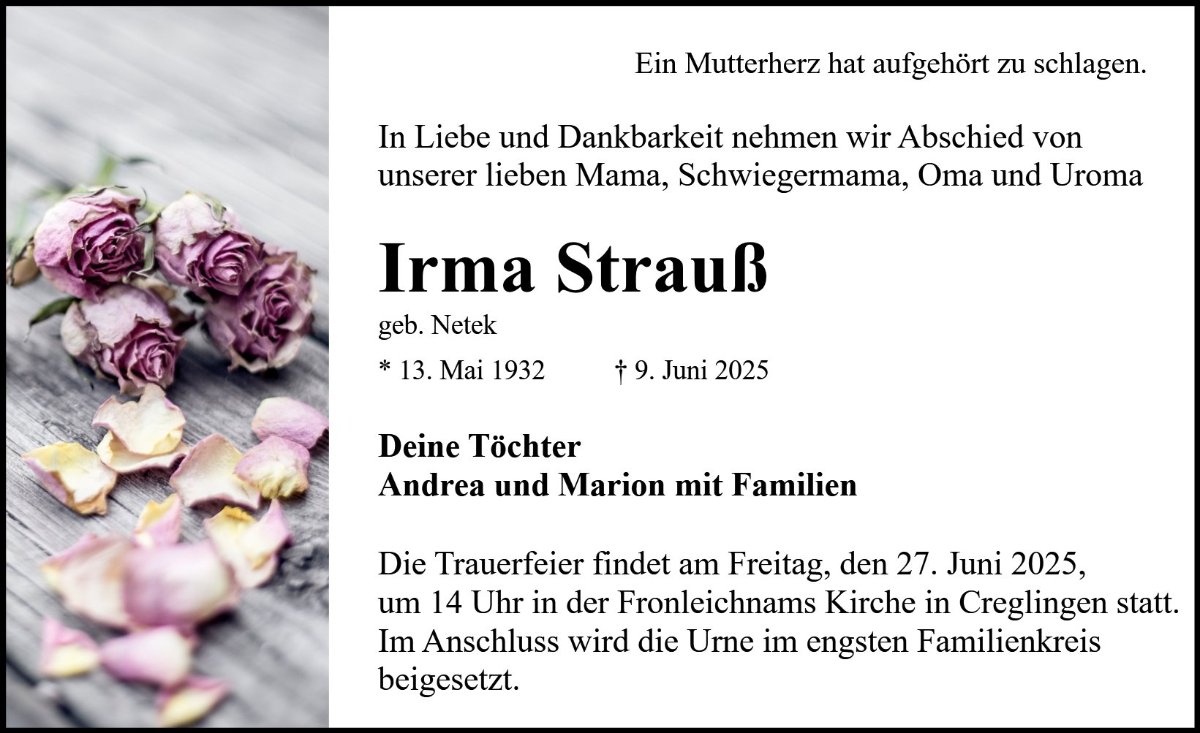 Irma Straußgestorben am 9. Juni 2025