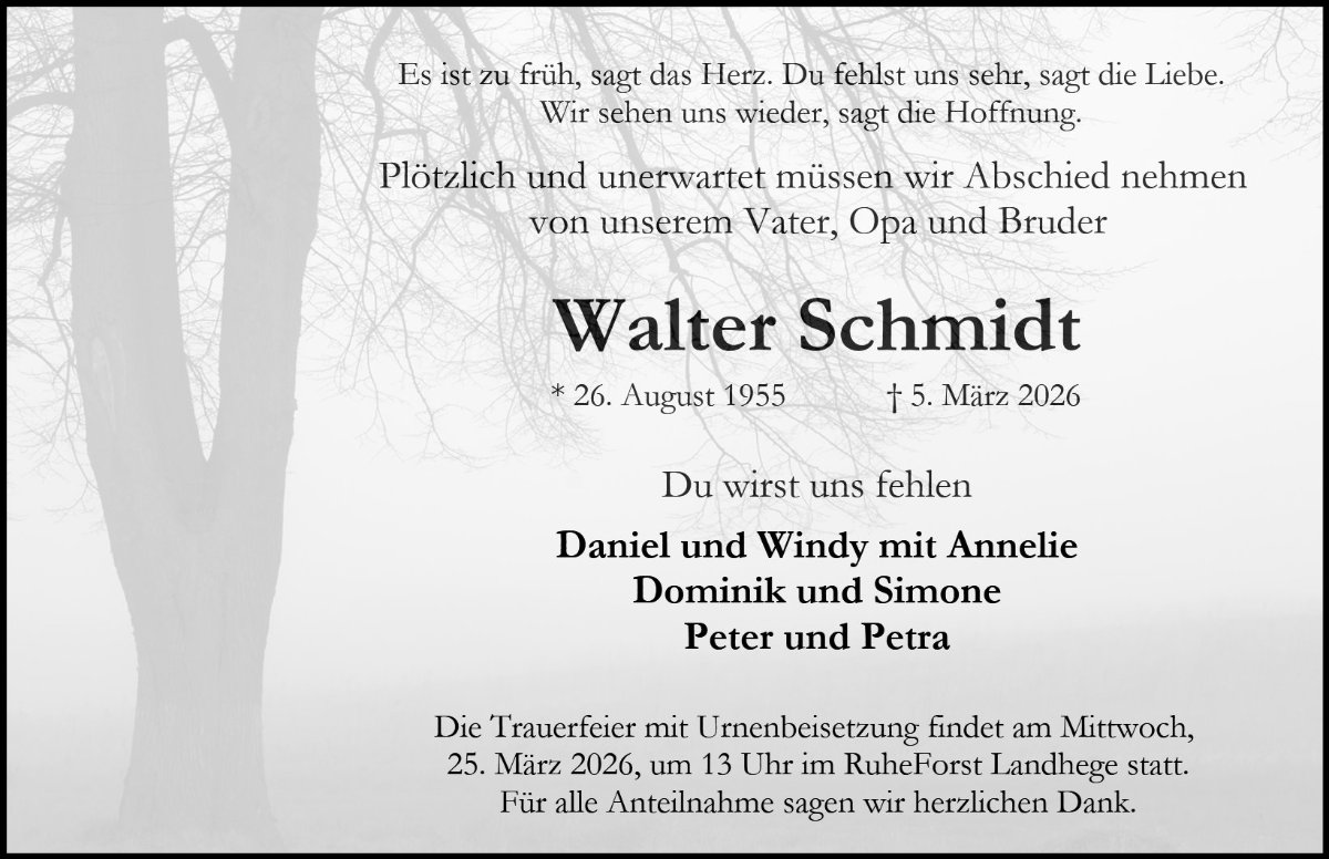 wir wünschen Ihnen von Herzen viel Kraft, dass Sie Menschen um sich haben, die Ihnen in dieser schweren Zeit beistehen und Halt geben. Zusätzlich können Sie auf dieser Gedenkseite Erinnerungen teilen und so das Andenken gemeinsam wachhalten.